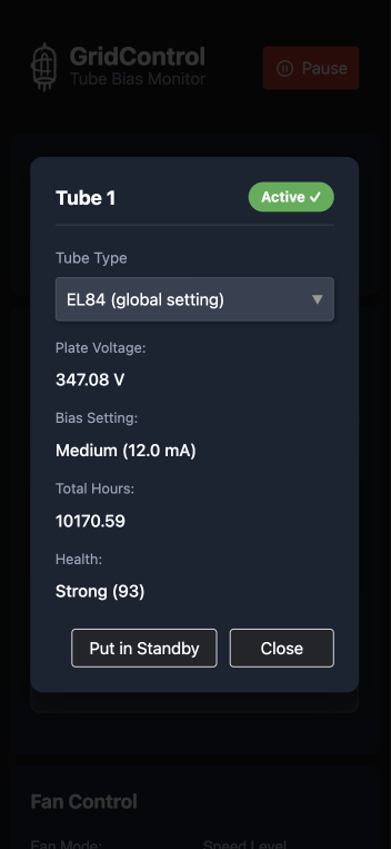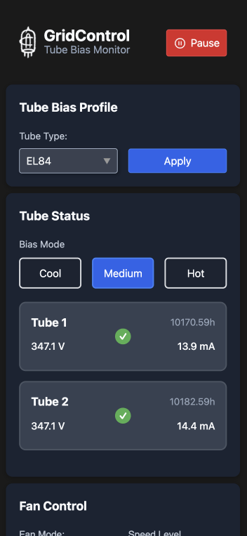 Meet GridControl, a sophisticated vacuum tube bias monitoring and control system. Run any two tubes your amp can support, whether matched or not. Change your bias whenever you want from your smart phone. Check tube health and usage. Get notified if your tube is failing. Zero maintenance. Just plug in your tubes and rock. Welcome to the 21st Century. Works in ANY amp with push/pull pair (ie, two tubes). 4 tube model coming soon.